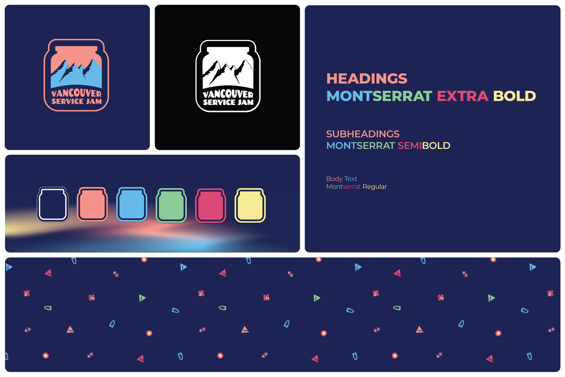 Aside from the precedent that each logo reflect its own cities/culture, the client wanted the logo/identity to embody the sense of exploration, fun and teamwork that makes this experience unique. Additionally, with no colour requirements, the design and system was to be flexible for use across social media, presentations and printed/digital assets, with accessible, free typeface options. Finally, the Global Jam requires all registered jams to have a jam jar in the logo.