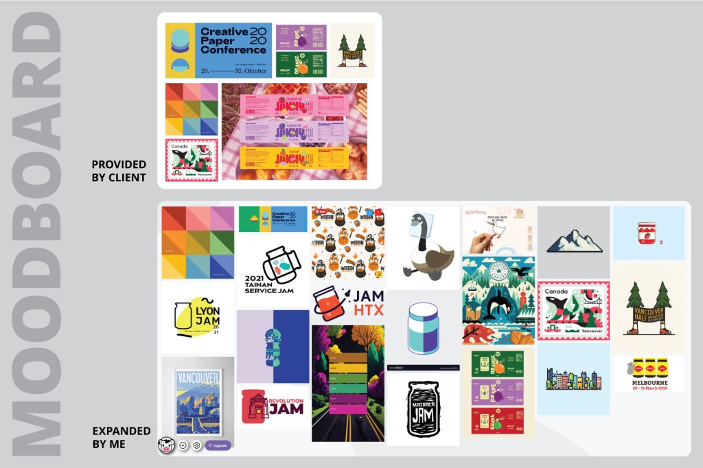 After sending a few images to give an initial idea of what kind of vibes the client was after, I expanded on the existing images and divided them into approximately 3 overall ideas: minimal/flat with strong colours; geometric shapes and icons; and (playful) personality-forward, whether that be via a mascot or an inanimate object/theme.