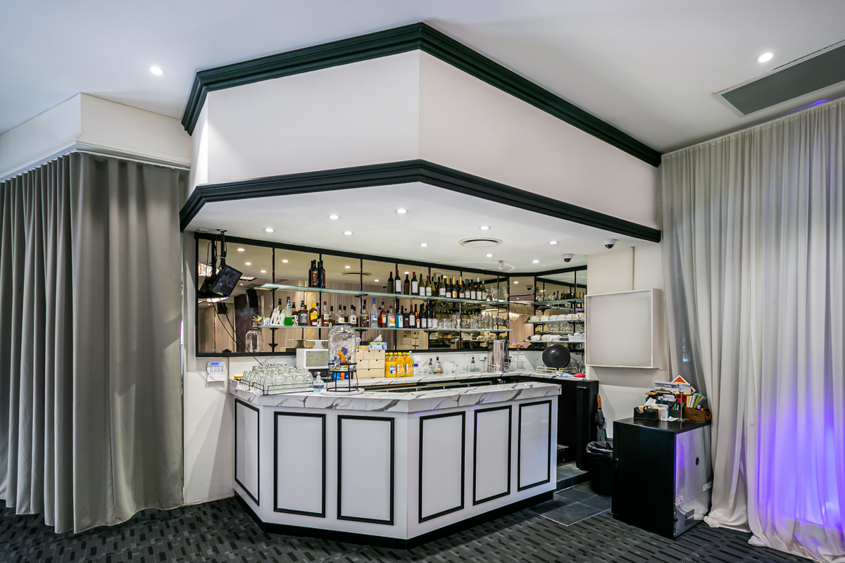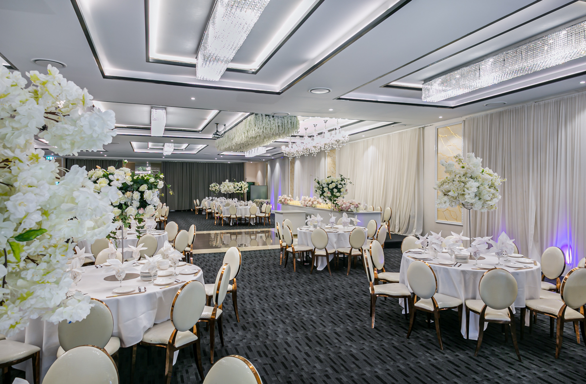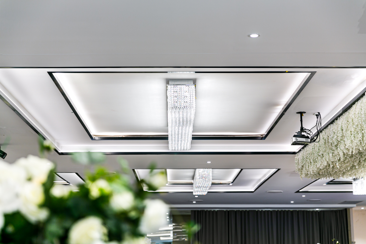 A sleek interior where the details are what matter, variations in texture and lighting elements create various points of interest for any wedding or function attendee.